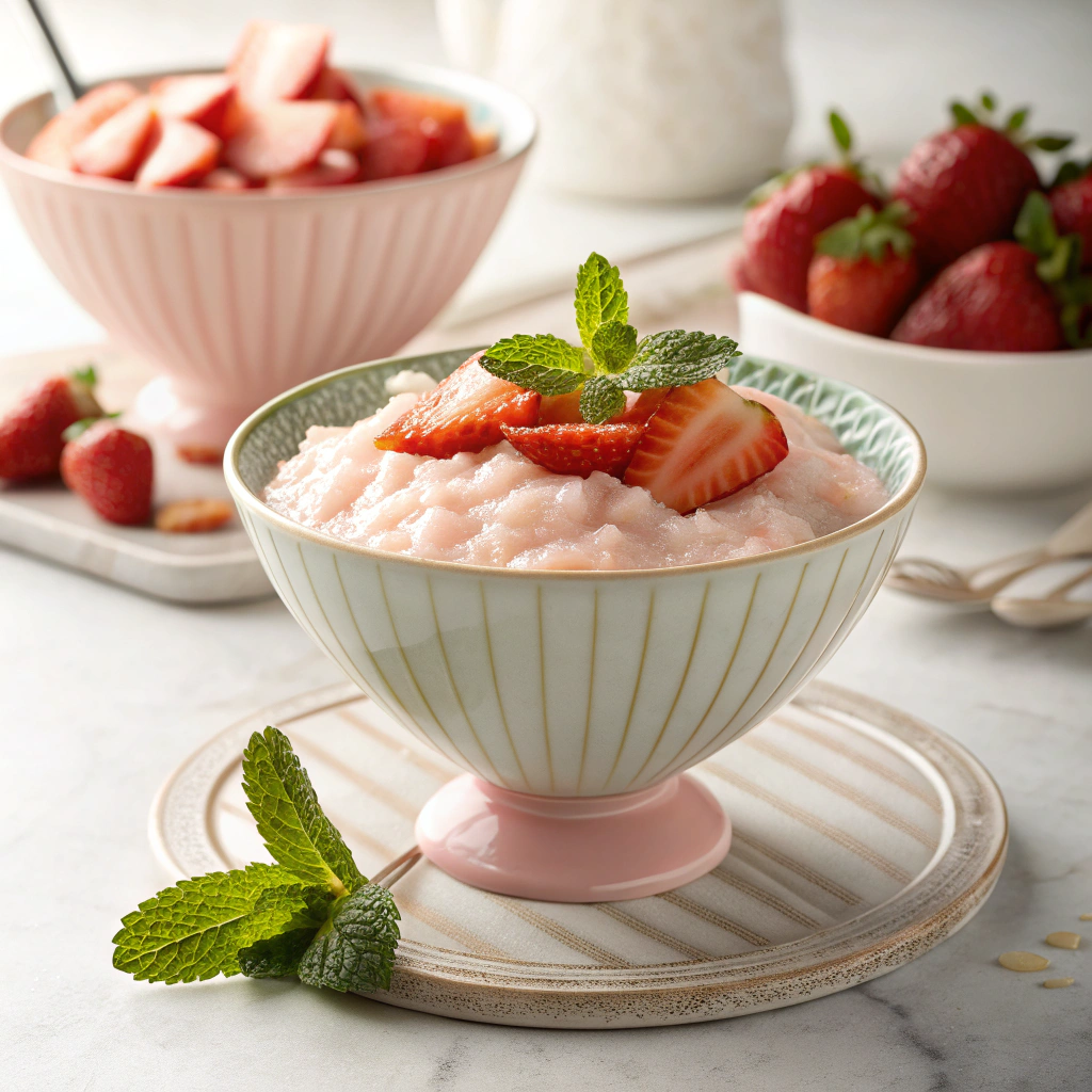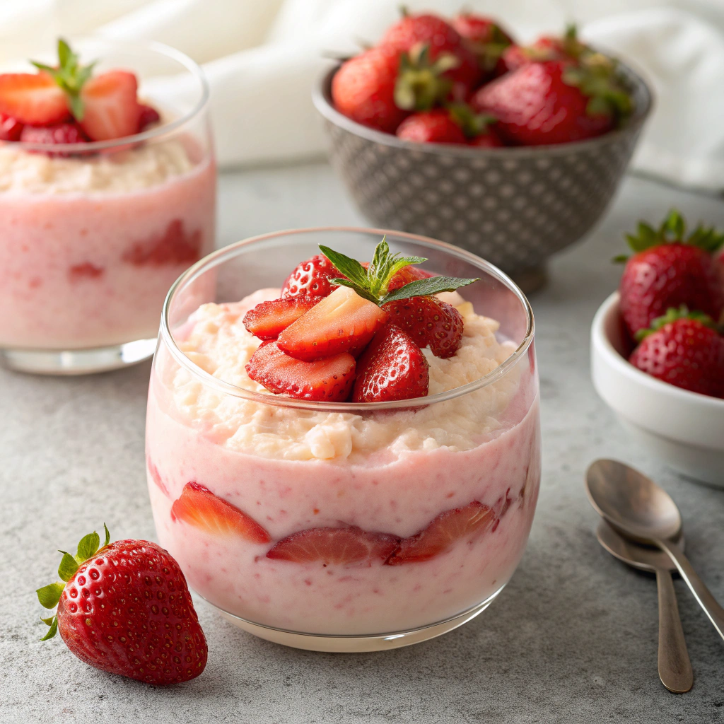 Egy krémes és édes rizspuding epres ízzel, tökéletes desszert minden alkalomra.