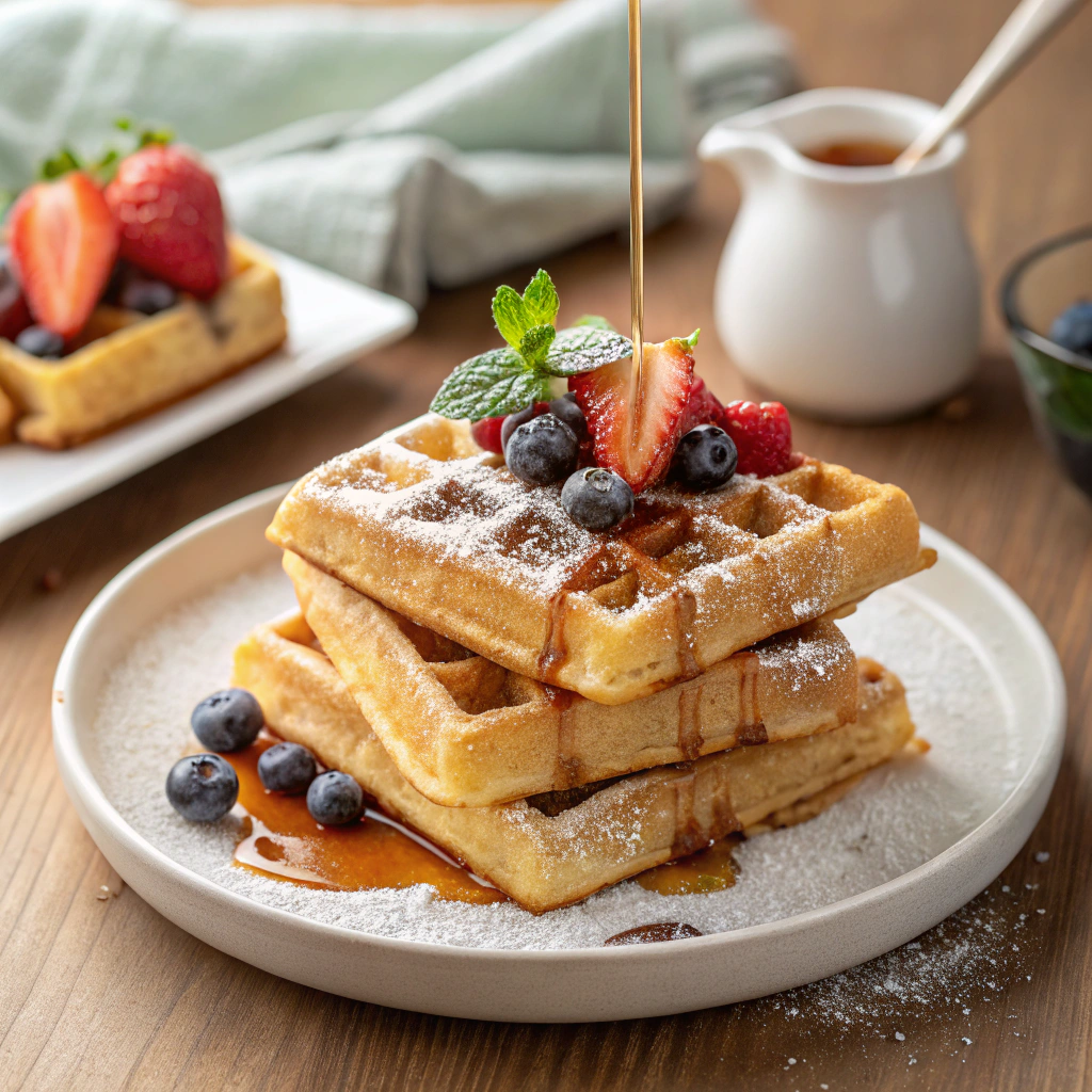 Puha, aranybarna gofrik gluténmentes lisztkeverékből — gyors reggeli vagy desszert. Tálaljuk porcukorral, friss gyümölccsel vagy juharsziruppal.