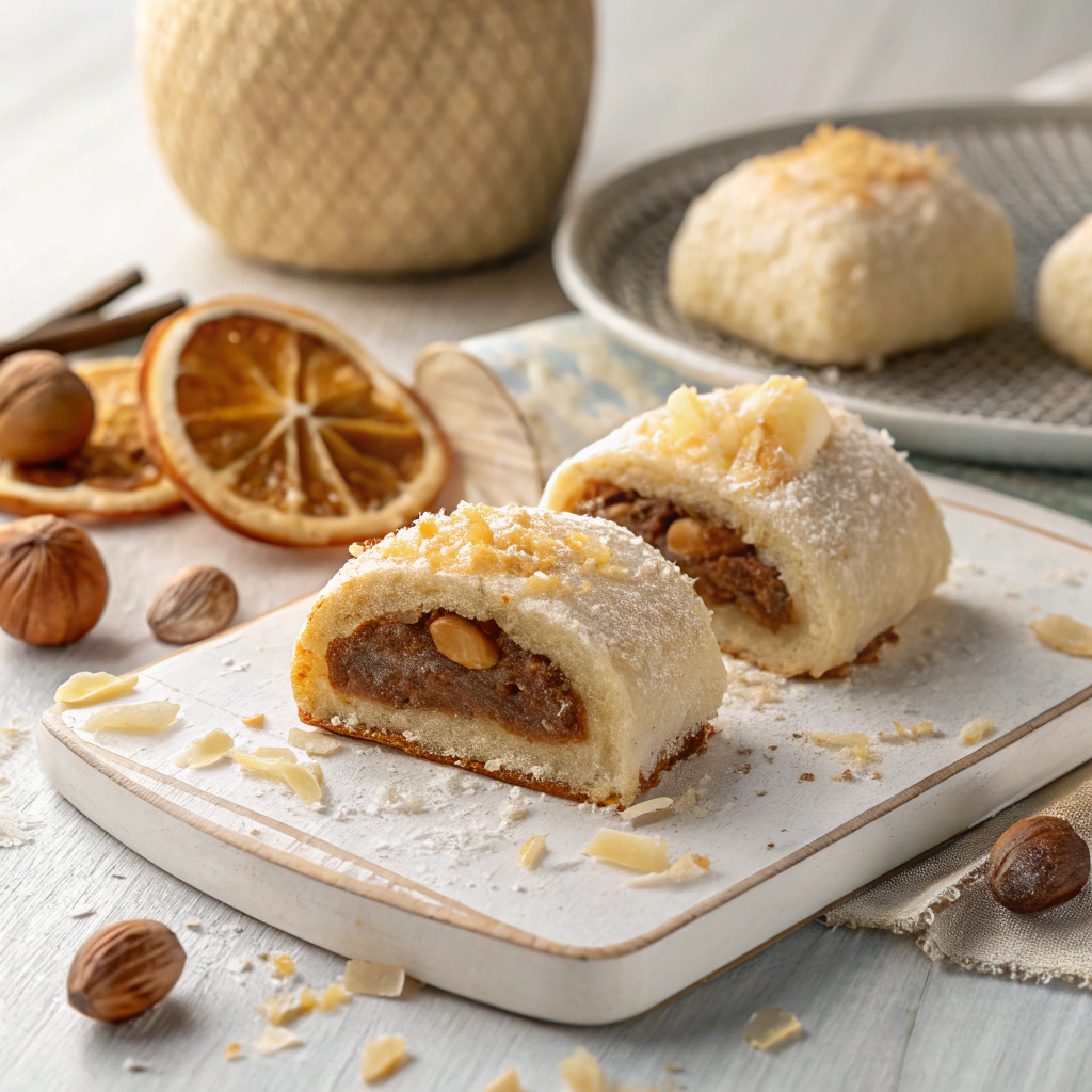 Gluténmentes és tejmentes kókuszbejgli, mely gesztenyés vagy mákos töltelékkel készíthető. A kókusz és a citrusok frissessége remekül párosul a gazdag töltelékekkel.