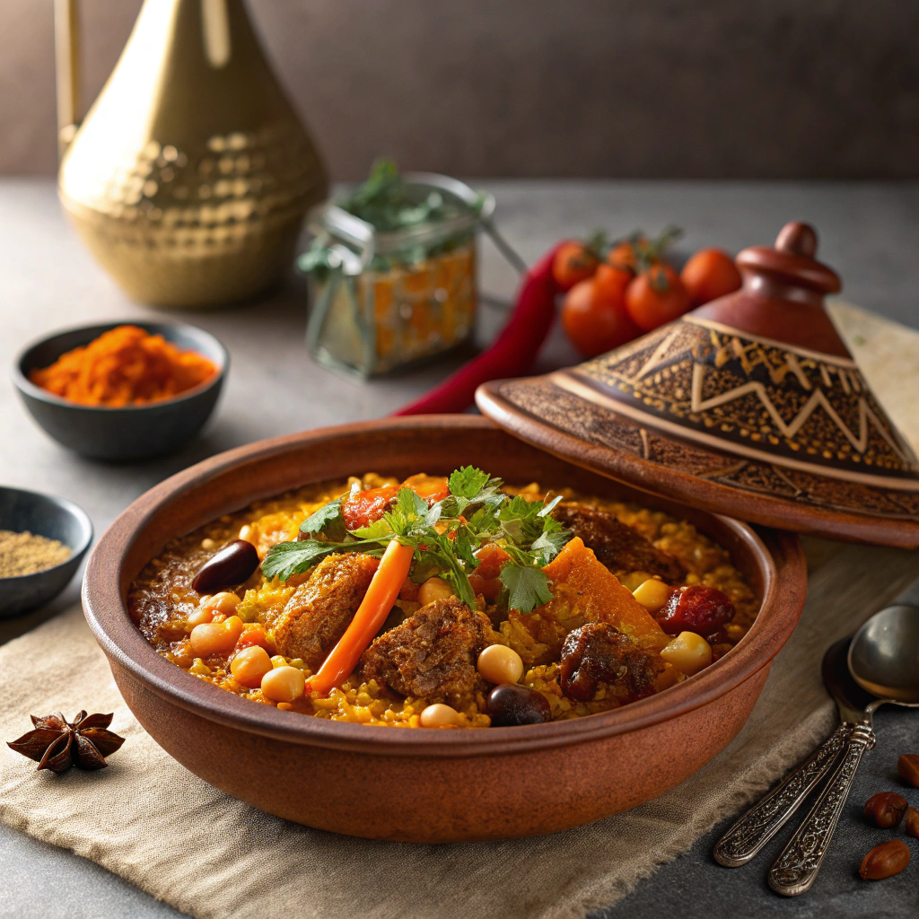 A tazsin egy ízletes és aromás marokkói étel, amely lassú főzéssel készül és tele van fűszerekkel.